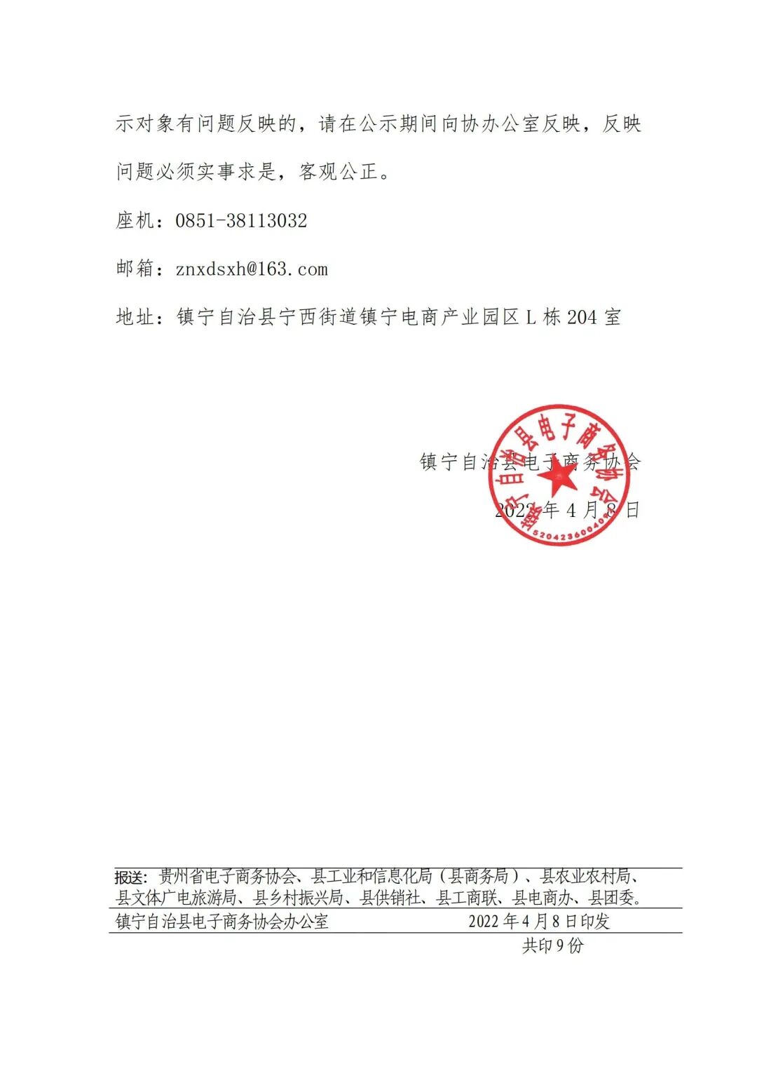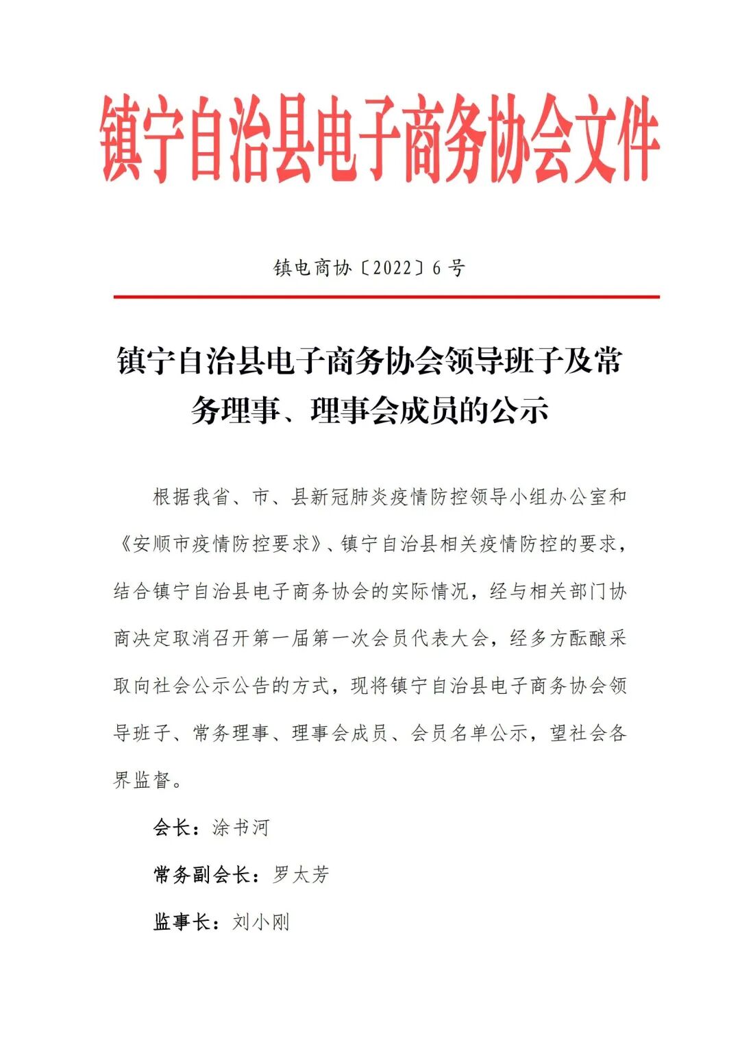 关于镇宁自治县电子商务协会领导班子及常务理事、理事会成员的公示