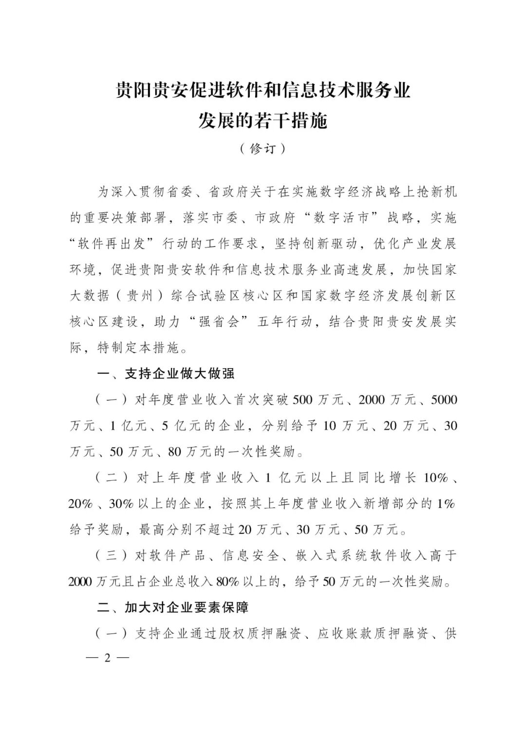 贵阳贵安促进软件和信息技术服务业发展的若千措施