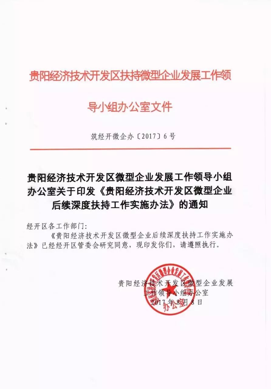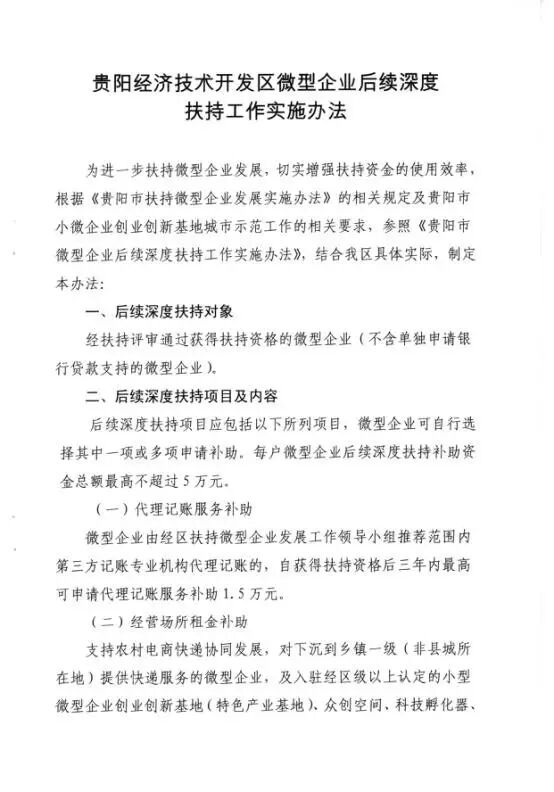 《贵阳经济技术开发区微型企业后续深度扶持工作实施办法》