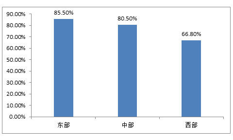 农村互联网的普及率也在逐年增高。截止2017年6月,农村互联网普及率上升至34%,但低于城镇35.4个百分点。从不同区域来看,地区之间发展不平衡。