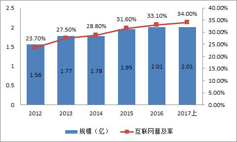 近几年来,农村网民规模持续增长,截至2017年6月,我国农村网民占比为26.7%,规模为2.01亿,预计2018年中国农村网民规模将达2.4亿。