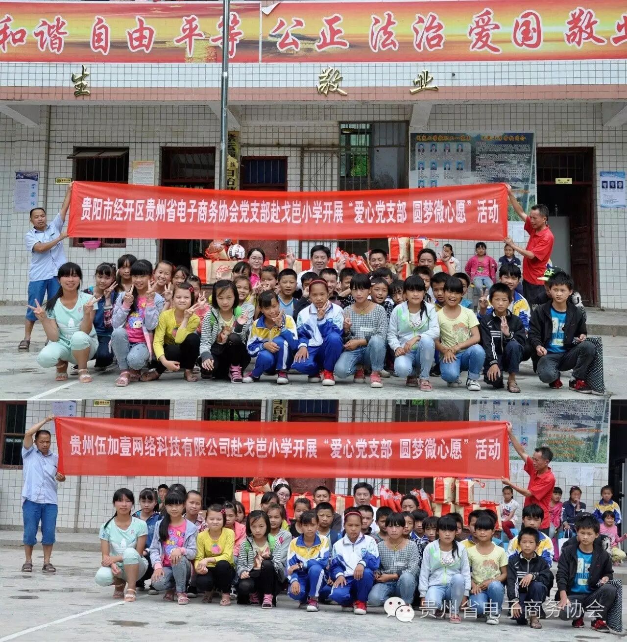 为积极响应贵阳经济技术开发区党工委的号召,7月5日贵州省电子商务协会秘书长彭先辉和协会党支部书记孔祥兰一行到协会结对帮扶小学——安顺市紫云县宗地乡平寨村戈岜小学展开 “爱心党支部 圆梦微心愿”活动,为学校留守儿童送去学习和生活用品,了解贫困留守儿童的学习生活状况以及困难,为他们圆上心中微愿。